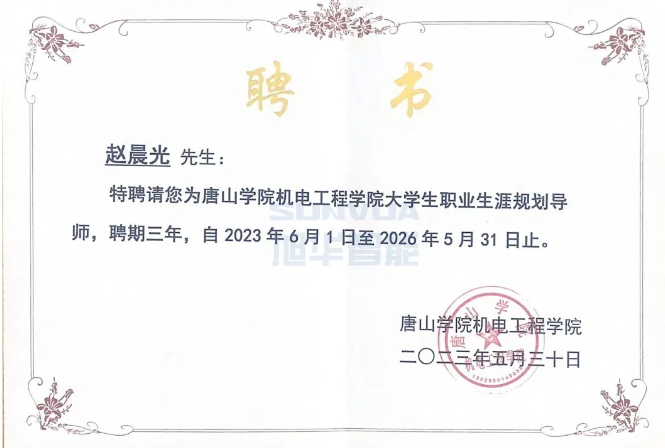 赵晨光总经理表示,唐山学院作为唐山市知名学府,集合着众多教育资源和人才,加入唐山学院机电工程学院成为兼职教师,既是荣誉,更是责任。今后,将配合学院教学规划,侧重理论与实践、产业与学术的深度融合,为学生给予职业生涯规划方向的指导。